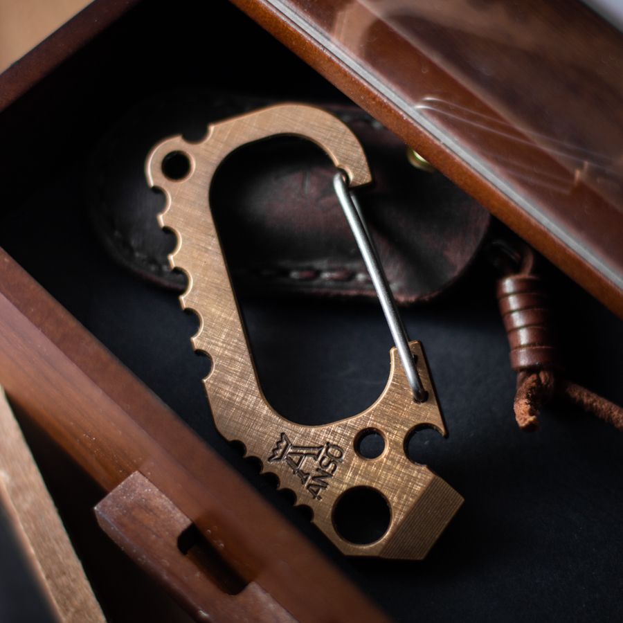 Der aus massivem Titan gefräste Karabiner überzeugt durch seine perfekte Größe, Gewicht und einer Feder aus Edelstahl mit der perfekten Spannung. Das Finish wird perlgestrahlt und gestonewashed. Darüber hinaus ist der Haken so gearbeitet, dass er sich sowohl als Flaschenöffner als auch für leichte Hebel- und Schraubarbeiten nutzen lässt. Einer für alle Fälle! Immer dabei, sobald man das Haus verlässt.