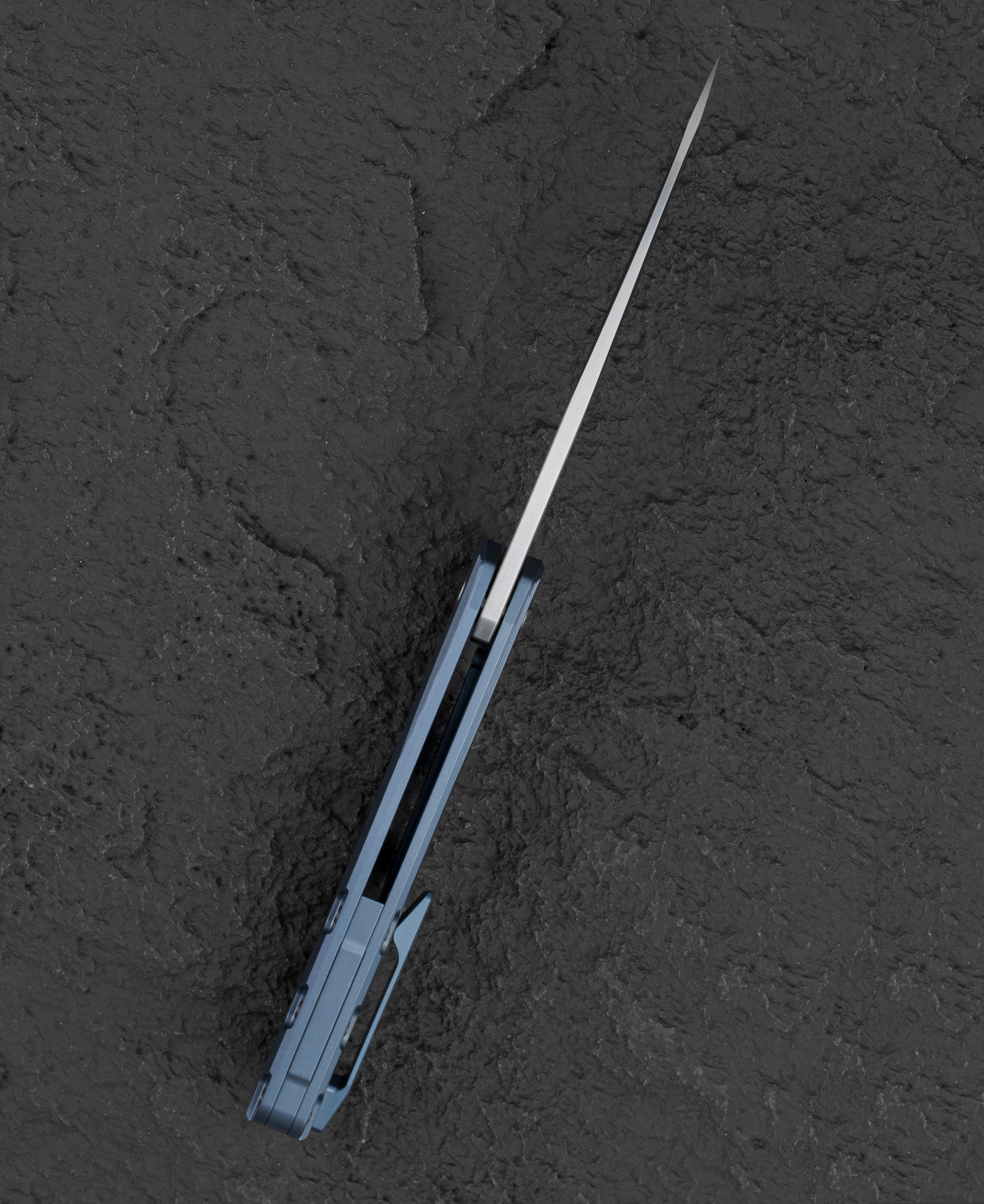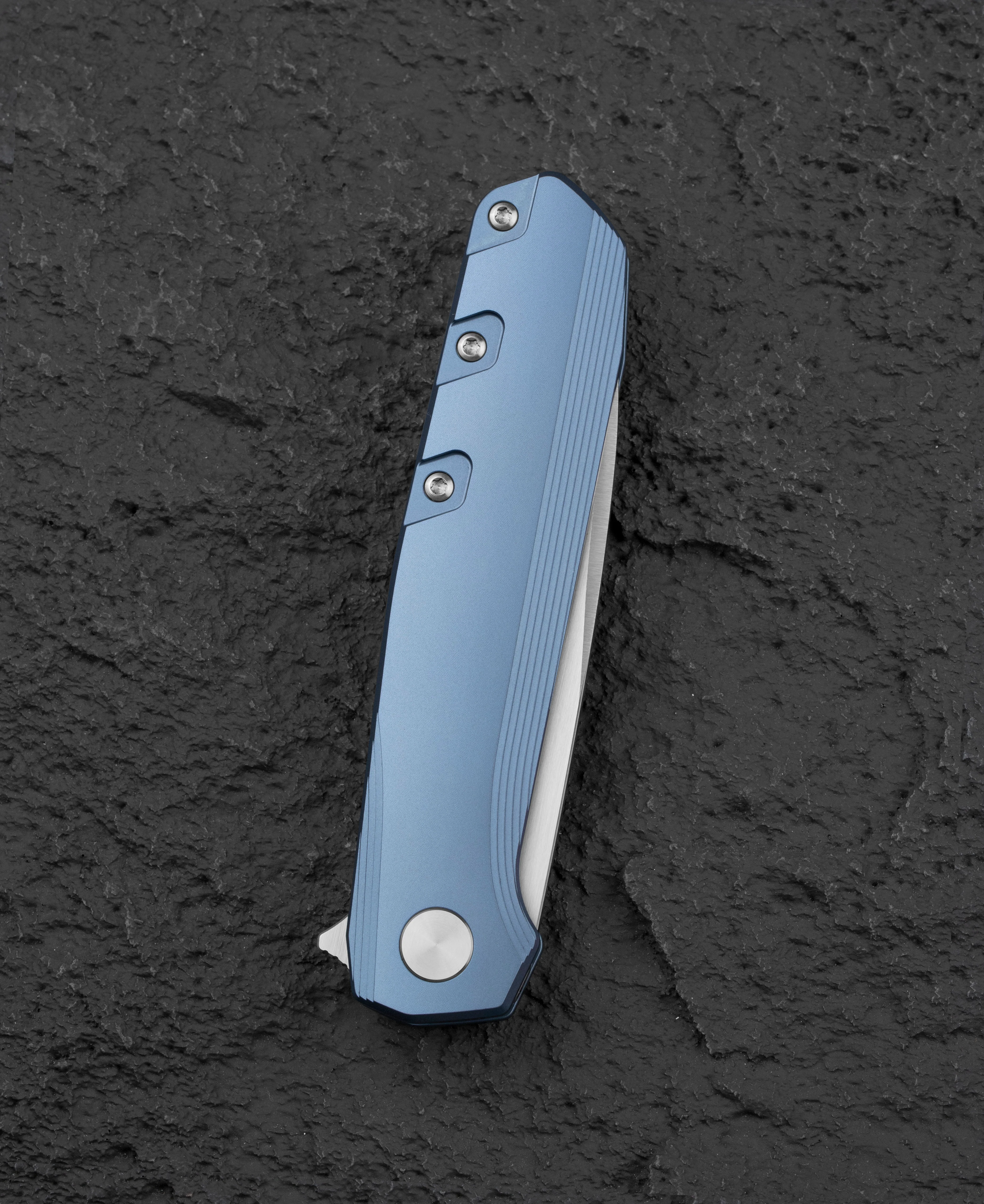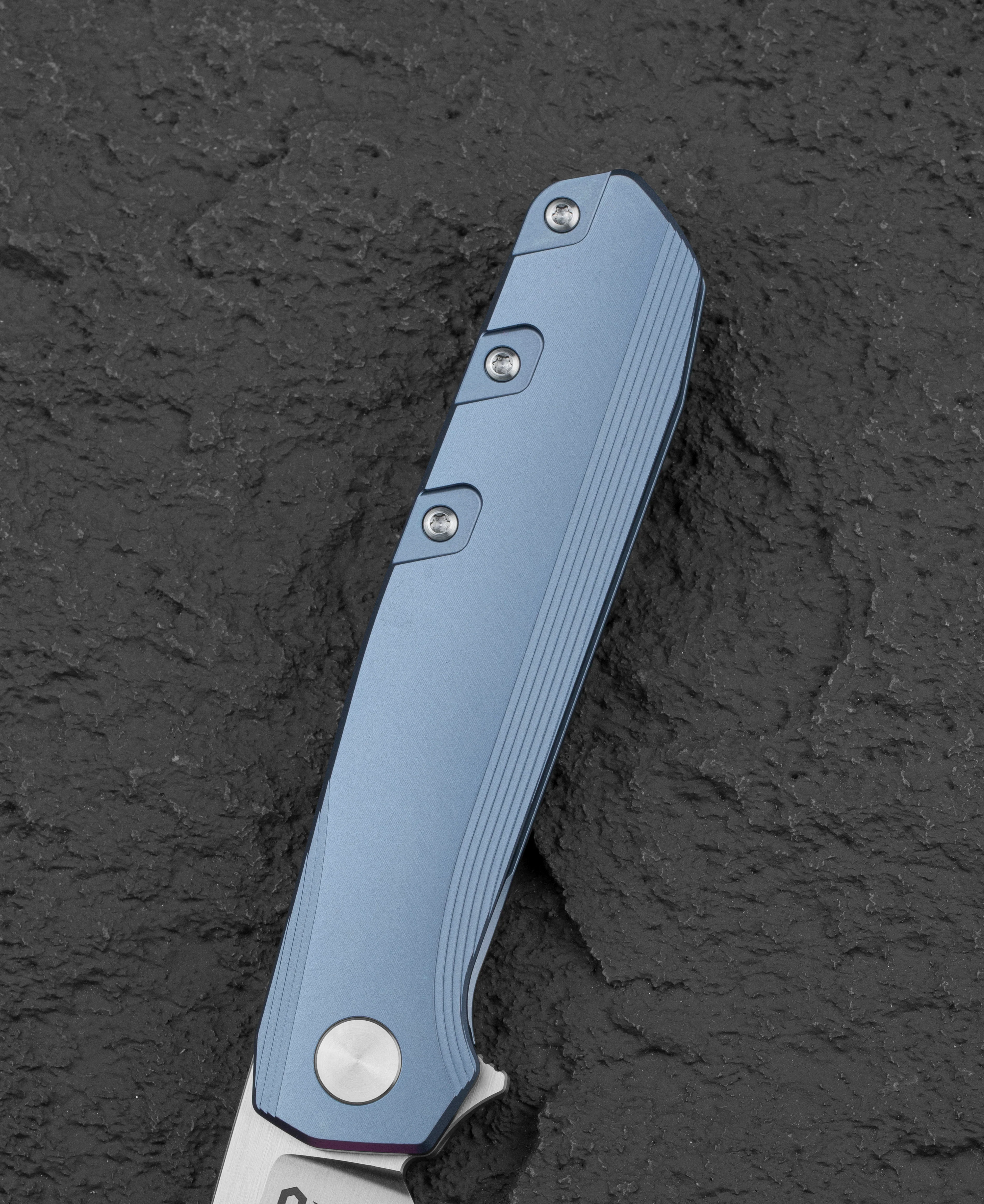 Der Griff aus massivem Titan ist aufwendig gefräst und wirkt dennoch sehr clean. Er bietet ein herausragendes Design und liegt universell gut in der Hand. Ein cooles Detail: Der Flippertab wird im geöffneten Zustand von der Form der Scales halb verdeckt, was das Gesamtbild harmonisch erscheinen lässt.