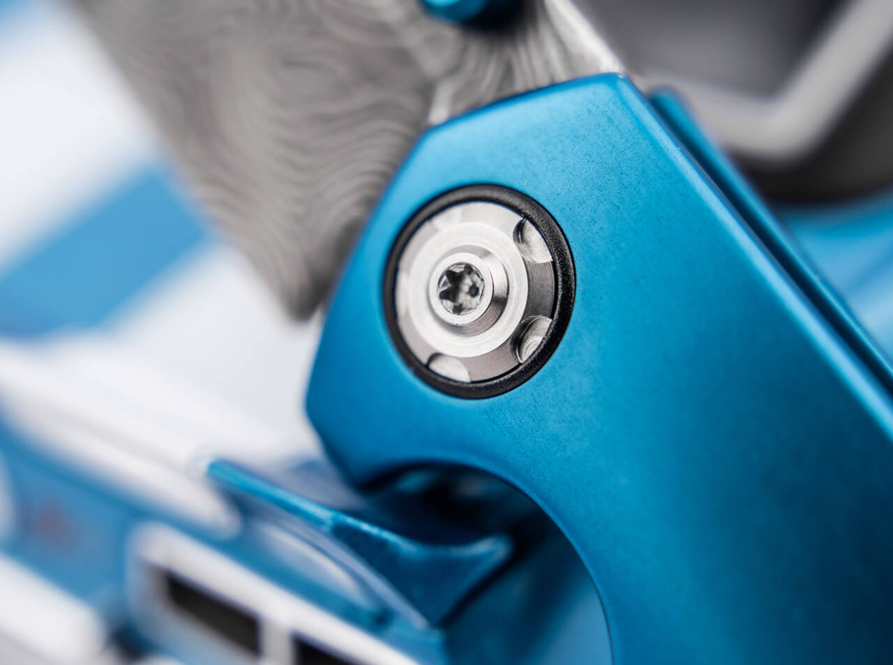 Das mit Präzision und Liebe zum Detail gefertigte Böker 1969 Z28-Damast verfügt über eine handgeschmiedete Damaszener-Klinge mit 80 Lagen im "Tread"-Muster, das an die schräge Motorhaube des Camaro Z28 erinnert. Die Klinge lässt sich mit dem blau eloxierten Daumenbolzen leichtgängig öffnen, und der bissige Liner Lock aus Edelstahl sorgt für eine sichere und zuverlässige Arretierung.