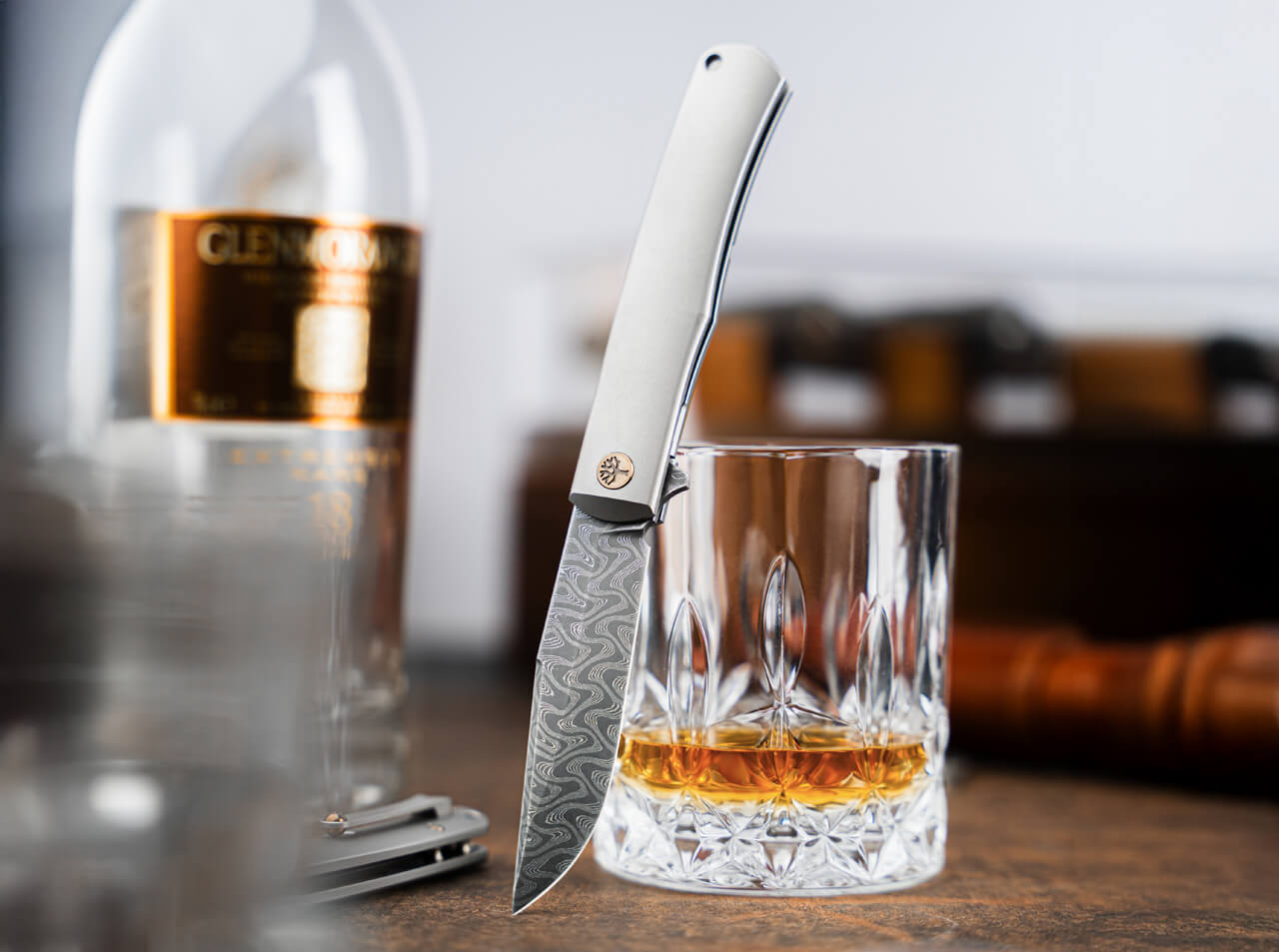 - Klinge aus 100-lagigem Damast