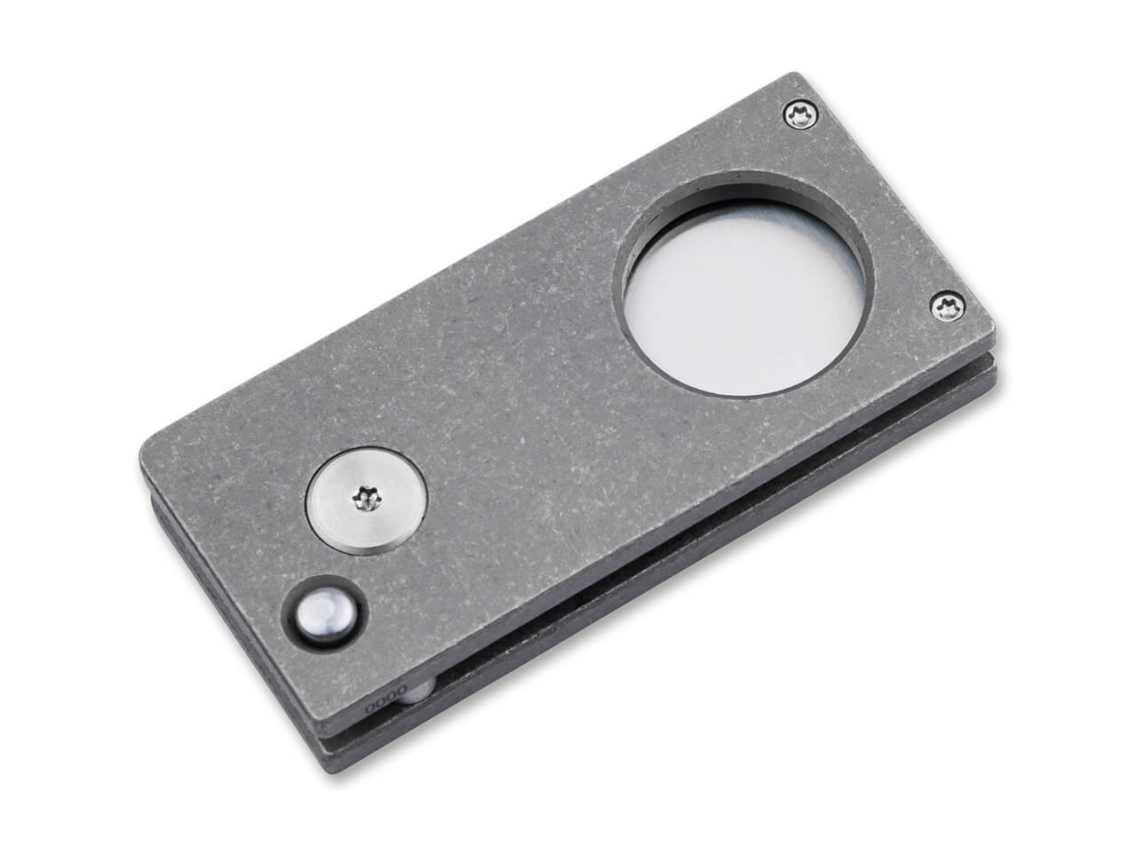 Das geradlinige Design des Böker Plus Cigar Cutter wird durch das rauchige Stonewash-Finish perfekt abgerundet.