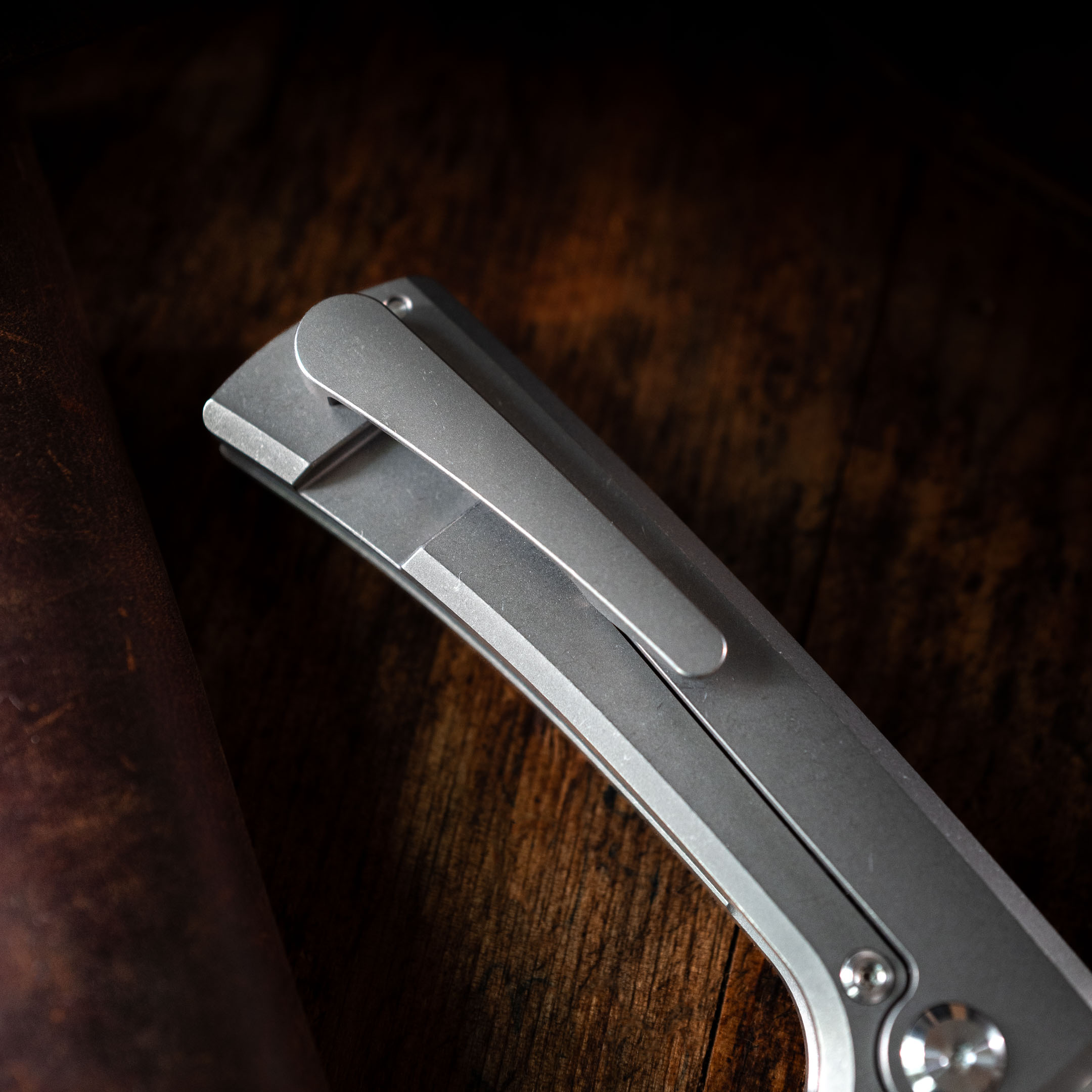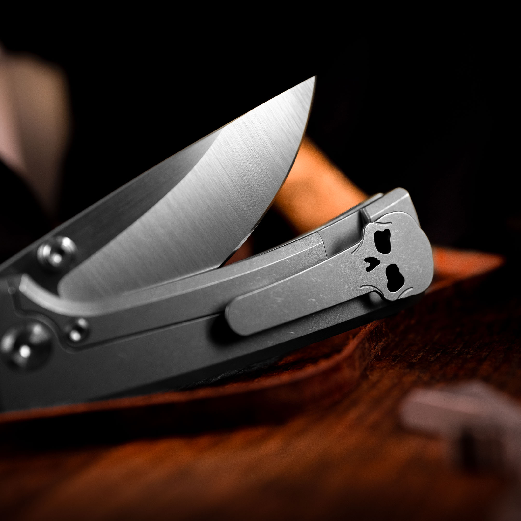 Das Messer wird mit dem klassischen Skull Clip geliefert, der durch versteckte Schrauben für eine klare Optik sorgt. Alternativ besteht die Möglichkeit, den mitgelieferten schlichten Clip zu montieren.