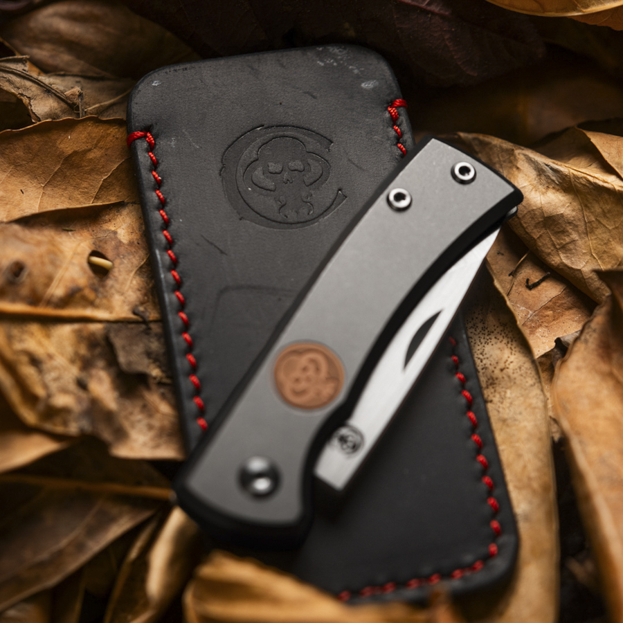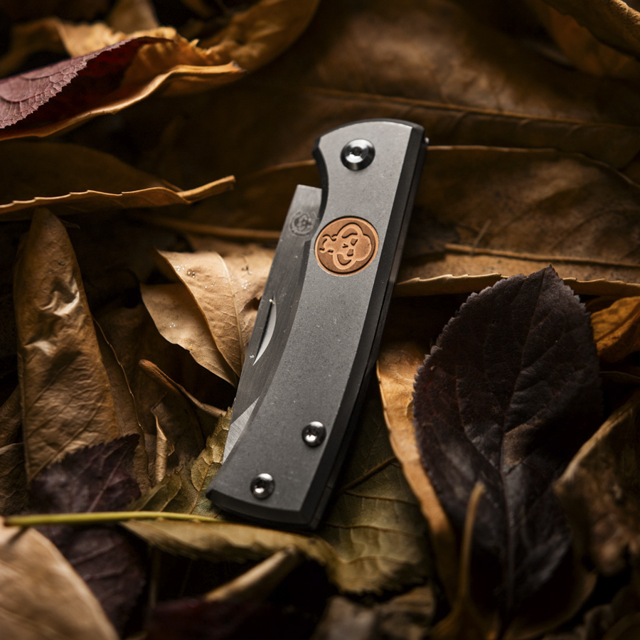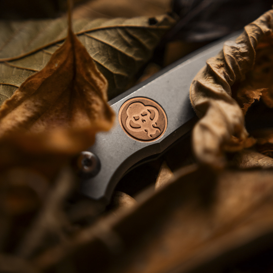 Das Chaves Slipjoint, produziert von Reate, ist einfach der Hammer. Stell dir vor: ein klassisches Slipjoint mit dem typischen Chaves-Style. Der Griff aus Titan mit dieser coolen Kupfereinlage trägt den unverkennbaren Chaves-Schädel.