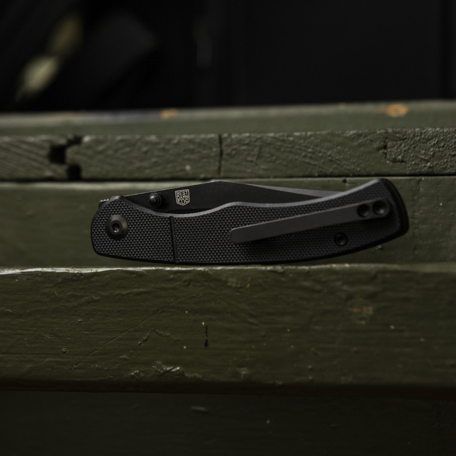 Das Clingman verbindet klassische Eleganz mit modernen Features. Die Clip-Point-Klinge aus Nitro-V-Stahl mit Black Stonewash-Finish bietet eine starke Schnitthaltigkeit und ist bereit für jede Aufgabe. Dank Daumenpin und Frontflipper öffnet sich die Klinge schnell und intuitiv – ganz nach deinem Stil. Die G10-Griffschalen sorgen für eine sichere, rutschfeste Handhabung, während der Liner Lock die Klinge zuverlässig arretiert. Abgerundet wird das Ganze mit einem milled Pocket Clip, der sich für einen komfortablen Tip-up-Carry eignet.