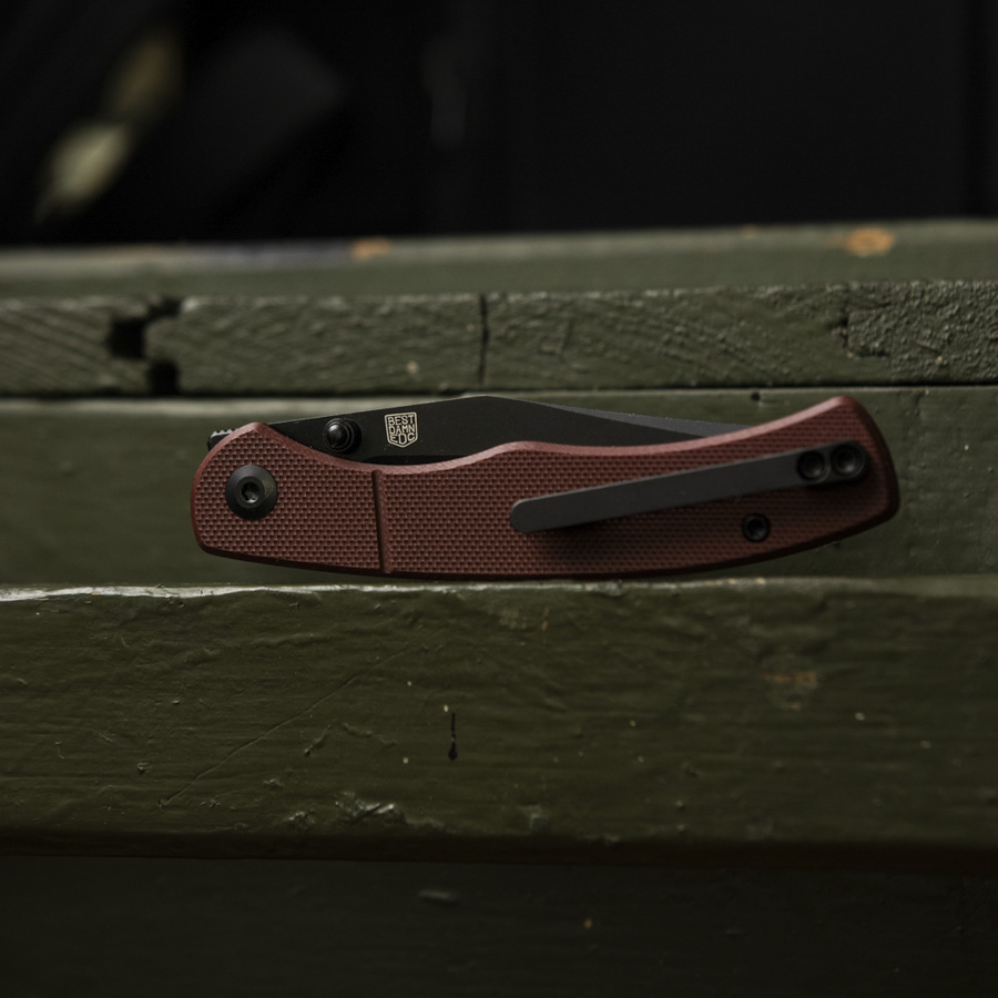 Das Clingman verbindet klassische Eleganz mit modernen Features. Die Clip-Point-Klinge aus Nitro-V-Stahl mit Black Stonewash-Finish bietet eine starke Schnitthaltigkeit und ist bereit für jede Aufgabe. Dank Daumenpin und Frontflipper öffnet sich die Klinge schnell und intuitiv – ganz nach deinem Stil. Die G10-Griffschalen sorgen für eine sichere, rutschfeste Handhabung, während der Liner Lock die Klinge zuverlässig arretiert. Abgerundet wird das Ganze mit einem milled Pocket Clip, der sich für einen komfortablen Tip-up-Carry eignet.