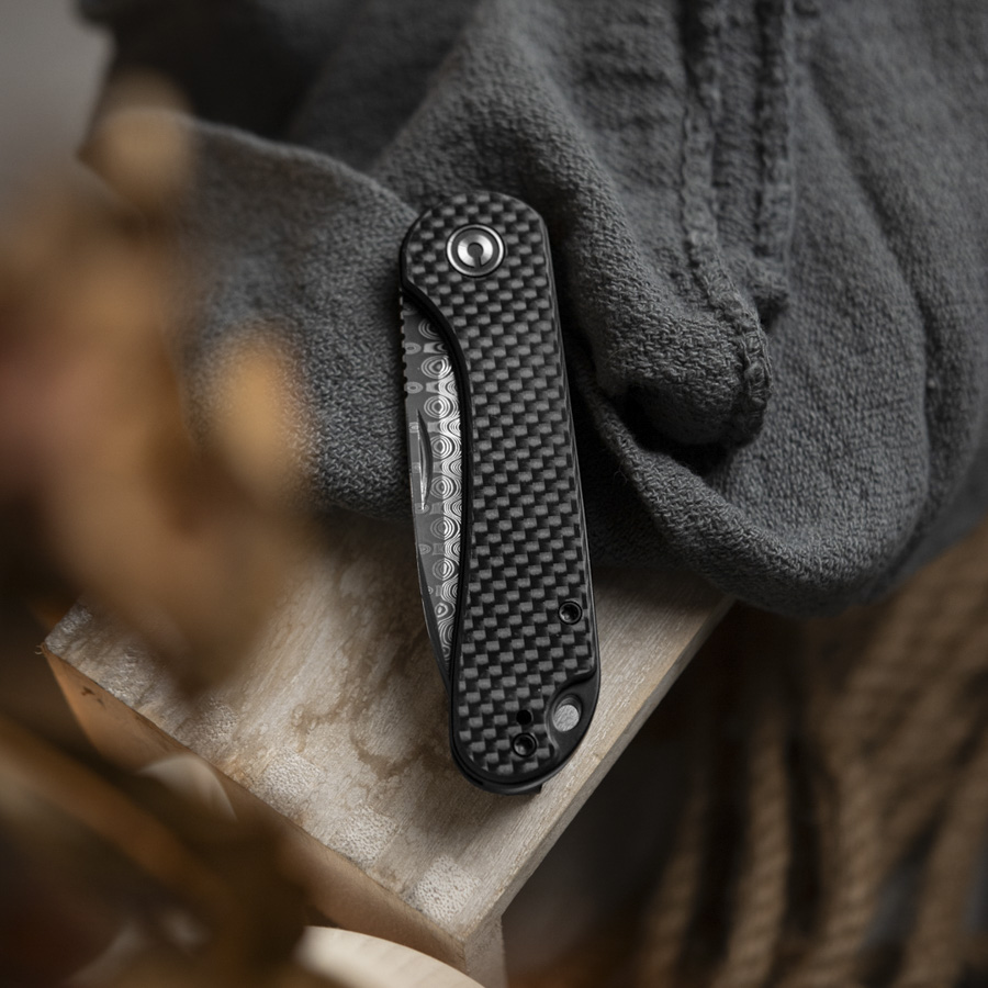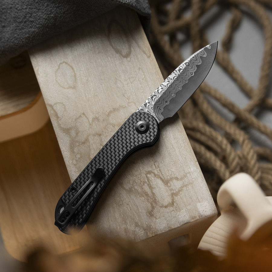 Der Griff basiert auf präzise gefrästen Stahllinern mit abgerundeten Kanten – für eine perfekte Ergonomie ohne Druckstellen. Und natürlich hast du die Wahl zwischen verschiedenen Griffmaterialien, die zu deinem Stil passen: Micarta, Carbon, Guibourtia Wood oder Blue Ocean Resin (macht optisch richtig Alarm!). Das dezente Civivi-Logo auf dem Konterstück der Achsschraube sorgt für eine cleane Ästhetik – die Klinge bleibt frei von unnötigen Beschriftungen.