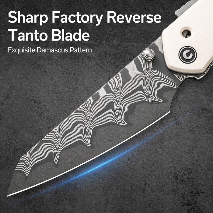 - Reverse Tanto Klinge aus Nitro-V Stahl mit Black oder Satin Finish oder Damast
