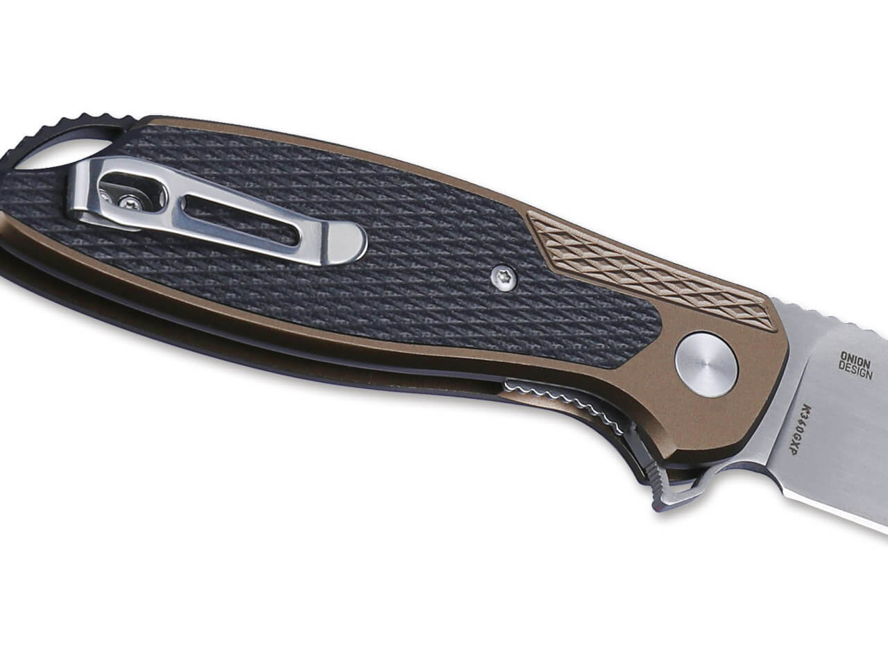 - gold eloxierter Aluminium Griff mit rutschfesten Einlagen aus G10G