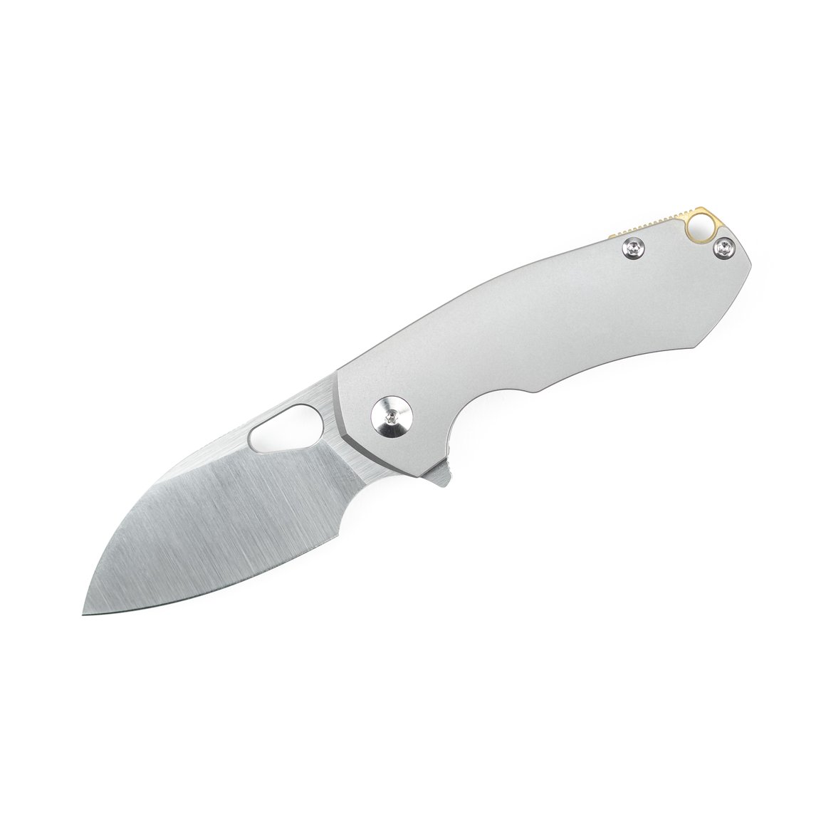Der Griff des Riv ist als Framelock ausgebaut und es überrascht nicht, dass hier mit der Voll-Titan-Konstruktion eine überaus gut aussehende und beliebte Materialkombination zum Einsatz kommt. Um Verschleiß im Verschluss vorzubeugen, wurde der Lockbar mit einem Einsatz aus Edelstahl versehen, der gleichzeitig als innenliegender Overtravel Schutz dient, so das der Lock beim Öffnen nicht versehentlich überdehnt werden kann. Typisch für GiantMouse ist der gebogene Draht-Clip, der das Messer tief und kaum sichtbar in der Hosentasche verschwinden lässt. Die fein gestrahlte Oberfläche der Titan-Griffschalen, verleiht dem Messer einen edlen Auftritt und bietet einen schönen Kontrast zum Belt-Finish der Klinge.