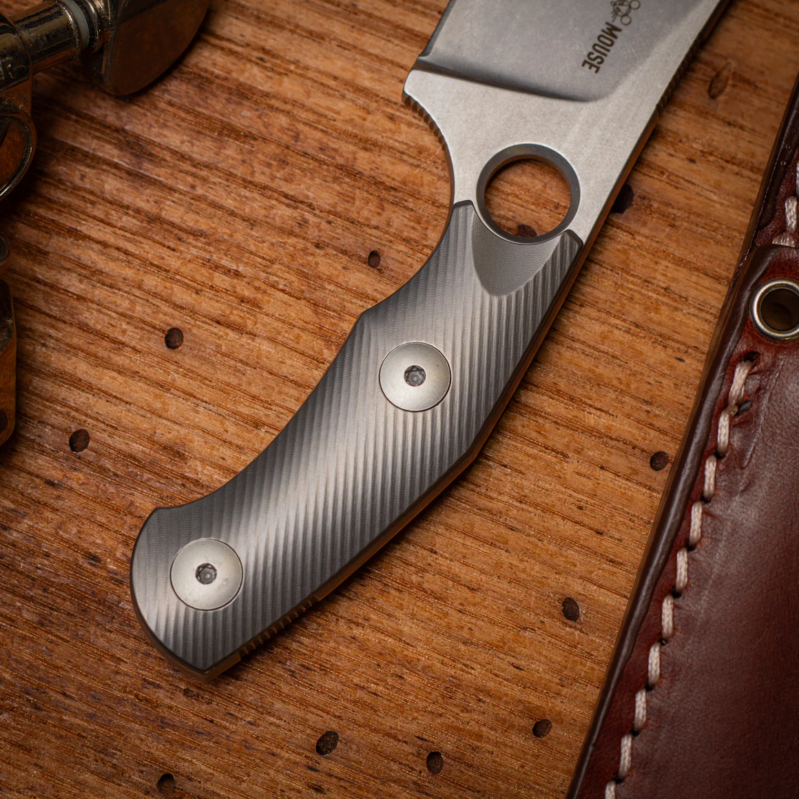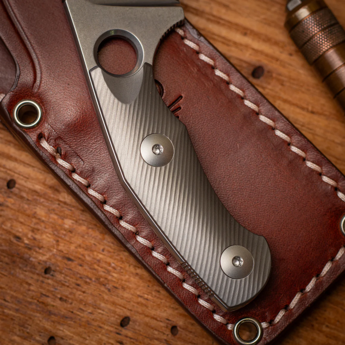 Beim Material hast du die Wahl: Green Micarta für einen klassischen, unaufgeregten Look; Burlap Micarta mit grober Jutestruktur und markanter Optik; oder Titan mit diagonalem Fräsmuster, das gleichzeitig griffig und überraschend smooth ist. Jede Variante bringt ihren eigenen Charakter mit, ohne dem Messer seine klare Linie zu nehmen.