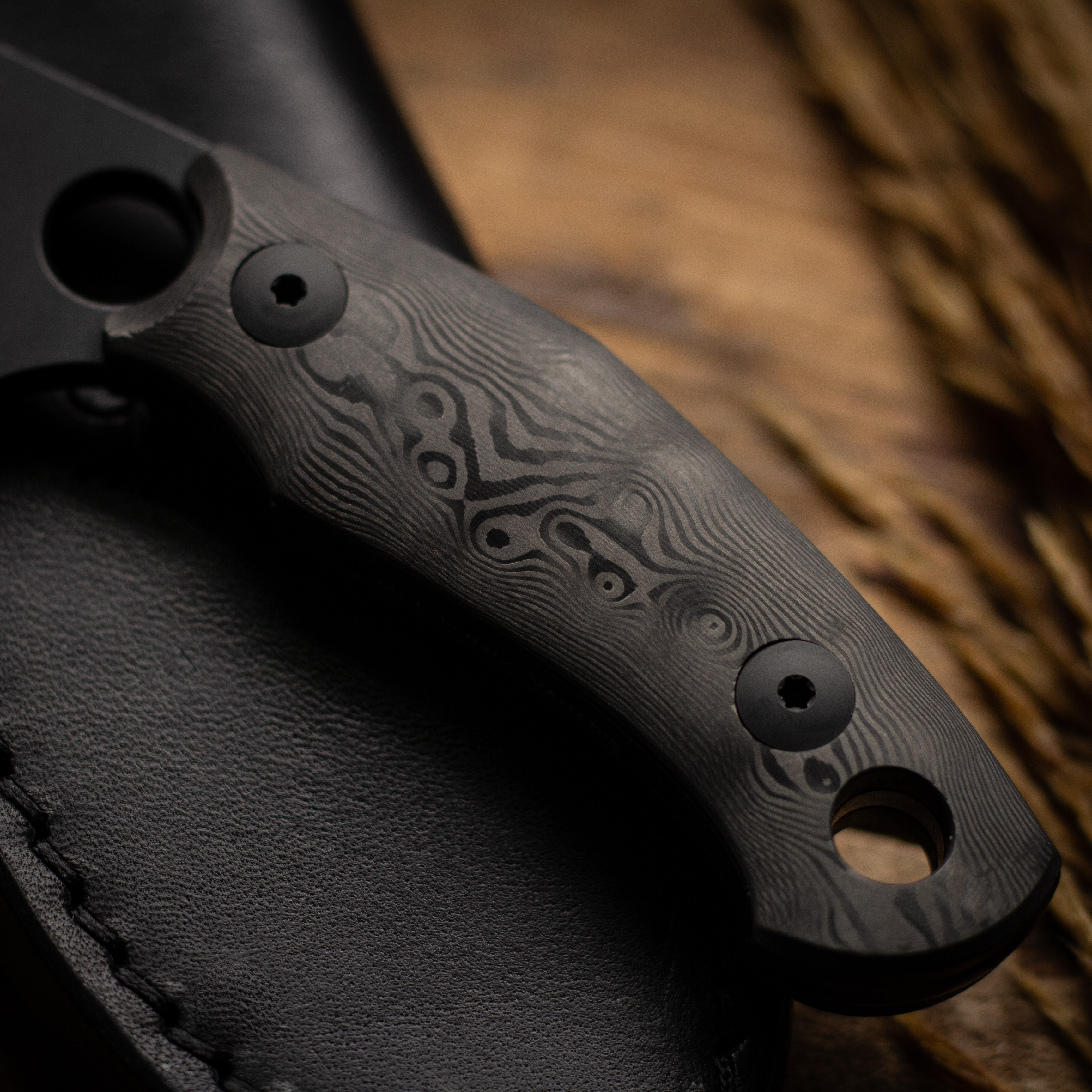 Beim Griffmaterial geht’s dann richtig zur Sache: Fat Carbon, einer der exklusivsten Materialhersteller der Szene, liefert hier Carbon-Griffschalen der Extraklasse. Die fast schon hypnotisch wirkende Marmorierung des Materials sieht einfach wunderschön aus – und bleibt dabei erstaunlich leicht, stabil und ergonomisch.