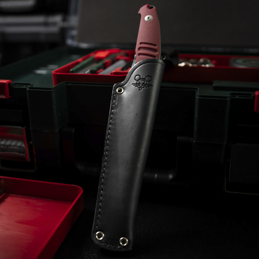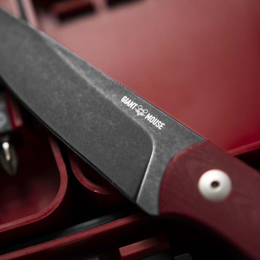 Das GMF2 ist eines der beliebtesten Messer aus dem GiantMouse Programm. Gerade für Outdoor Aktivitäten ist dieses robuste Fixed dank seines robusten Sabre Grinds ausgesprochen beliebt. Der Griff mit seinen verschraubten Schalen aus rotem G10, liegt wunderbar satt in der Hand und ermöglicht so langes Arbeiten, ohne dass dir Hotspots zu schaffen machen.