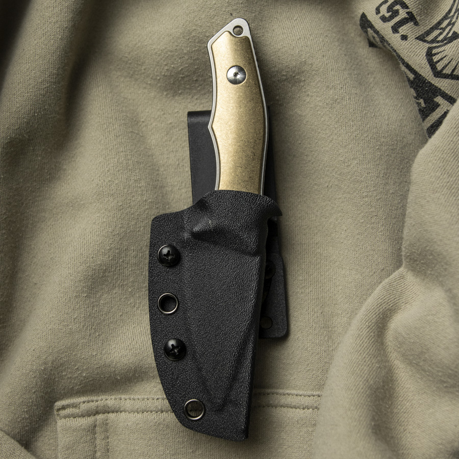 • Kompaktes Fixed mit Kydexscheide und Gürteladapter für eine horizontale als auch vertikale Trageweise