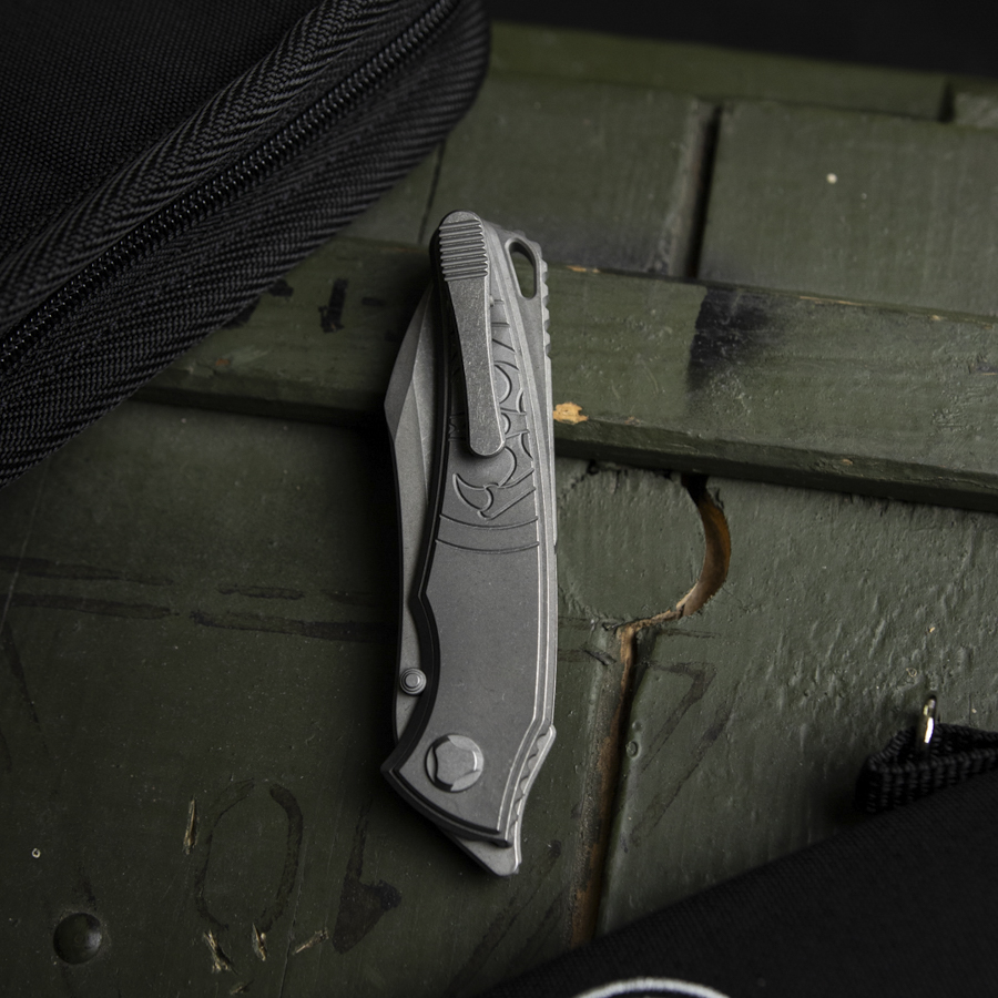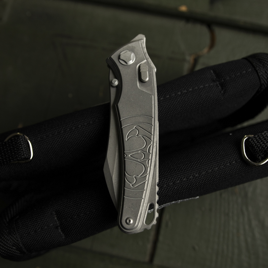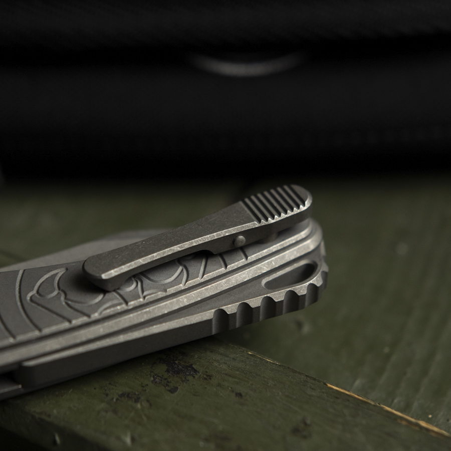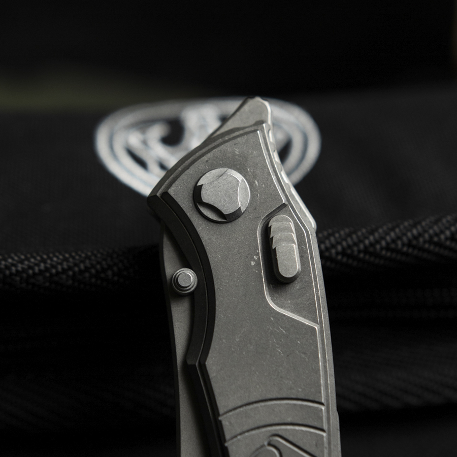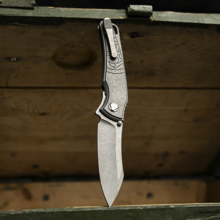 Die Klinge aus Böhler M390 liefert maximale Schnitthaltigkeit und Korrosionsbeständigkeit. Der Titan-Frame wirkt stabil, bleibt dabei aber leicht und perfekt ausbalanciert. Jede Linie, jede Kante ist sauber gearbeitet, nichts steht über – es ist ein Messer, das einfach stimmt.