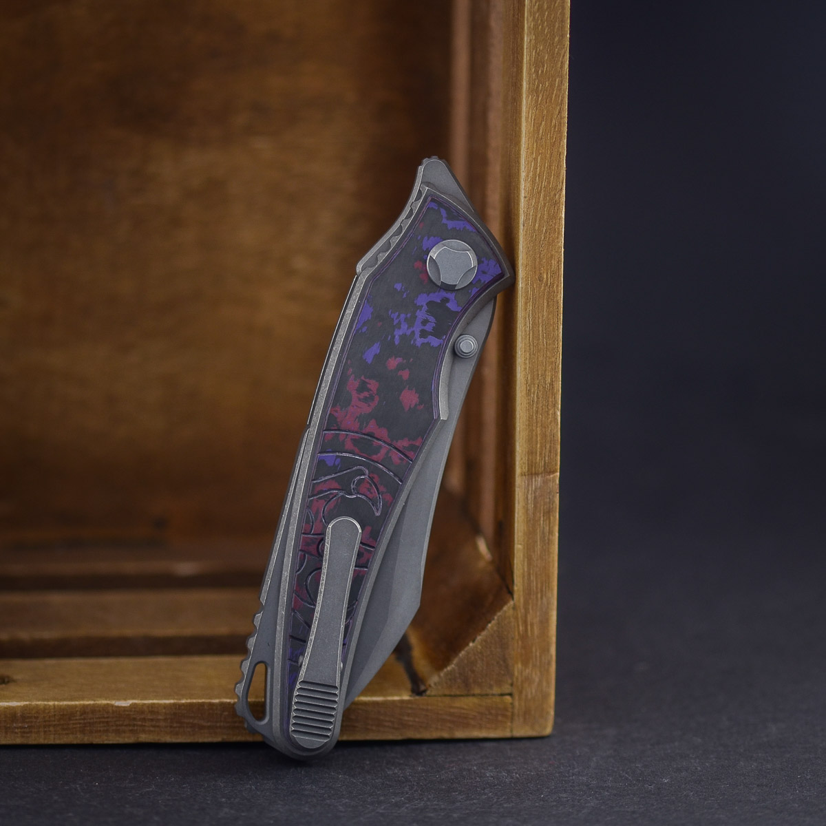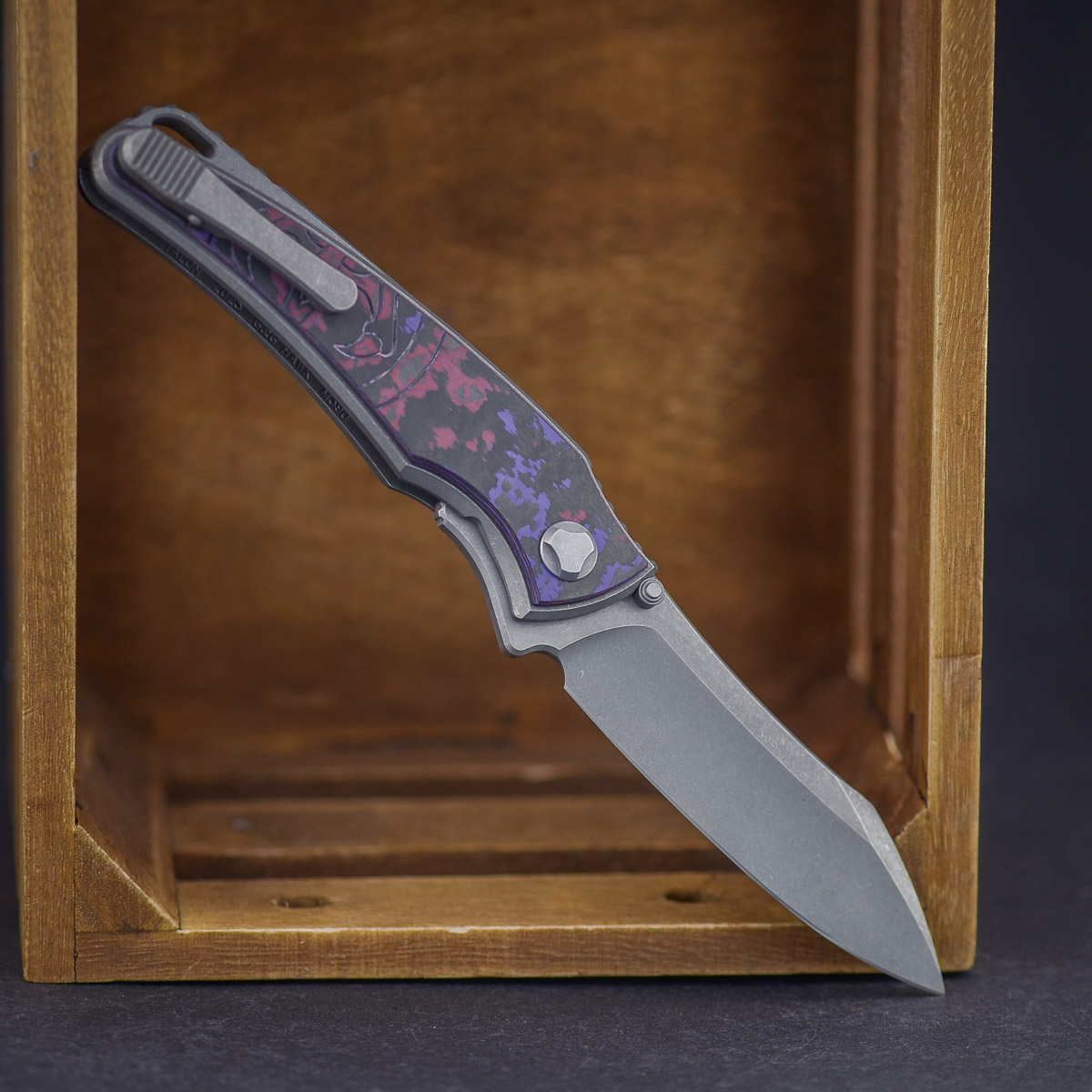 Die Klinge aus Böhler M390 liefert maximale Schnitthaltigkeit und Korrosionsbeständigkeit. Der Titan-Frame wirkt stabil, bleibt dabei aber leicht und perfekt ausbalanciert. Jede Linie, jede Kante ist sauber gearbeitet, nichts steht über – es ist ein Messer, das einfach stimmt.