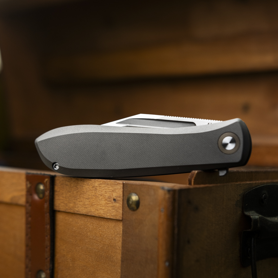 Die Klinge aus S90V-Stahl ist etwas kräftiger gehalten, damit die Spitze auch bei härteren Einsätzen stabil bleibt. Dank Hohlschliff schneidet sie trotzdem scharf wie der Colt von Doc Holliday. Zum ersten Mal bei Jack Wolf gibt’s hier einen Flipper Tab, kombiniert mit einem Fuller auf beiden Klingenseiten – das fühlt sich so smooth an wie das Durchladen eines Revolvers.