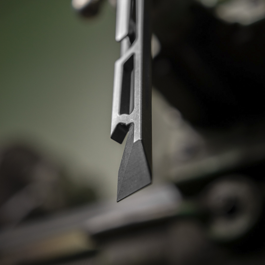 Das Side Piece hat eine breite Hebespitze, welche perfekt für vielseitige Anwendungen geeignet ist. Zum Beispiel als Schaber oder zum Öffnen von Paketen bzw. Kisten oder Dosen.