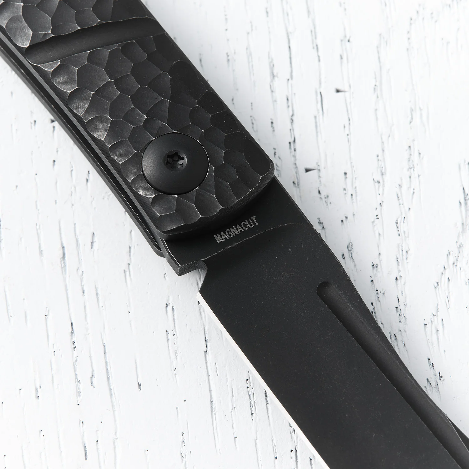 Zu allererst muss man sagen, dass ich vermutlich eigentlich gar nicht die Zielgruppe für dieses Messer bin. Ich bin normalerweise eher der Mensch für Hosentaschen Fixed Blades aber irgendwas an diesem Messer hat mich direkt gecatched. Und was soll ich sagen, ich hab das Messer mittlerweile täglich dabei und freue mich jedes Mal darüber, wenn ich es für meine kleinen Alltagsaufgaben heraushole. Der Hohlschliff gleitet perfekt durch alles, was ich dem Messer anbiete und schnappt so befriedigend zurück in den Griff, wenn es seine Arbeit erledigt hat. Auch der Griff fühlt sich mit seiner gehämmerten Textur unglaublich gut in meinen Händen an, einzig die kleine Schraube am Griffrücken unterbricht die Haptik, da sie leicht heraussteht. Mich persönlich stört das nicht aber da gibt es bestimmt auch andere Meinungen. Zu guter Letzt rundet die mitgelieferte Leader Sleeve das ganze Paket perfekt ab. Mittlerweile hat das Leder bei mir richtig Charakter bekommen und macht das Messer perfekt für meine Hosentasche. Und Danke, Danke dafür dass es keinen Clip gibt. Als Fixed Blade Mensch hätte ich für den sowieso keine Verwendung gehabt. Also falls ihr sonst keine Slipjoints mögt, gebt dem hier eine Chance, ich habe es keine Sekunde bereut.