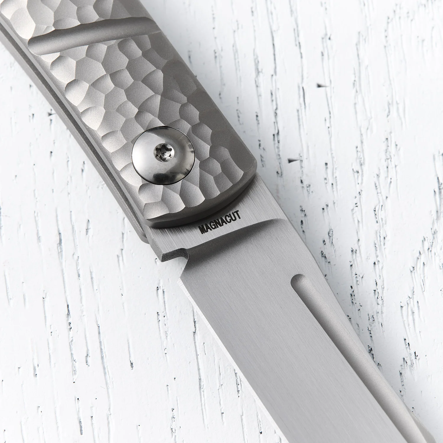 Tom Medvedichs Idee eines modernen Gentleman Folders zeigt sich in jedem Detail: Der schlank gehaltene Griff liegt dank einer dezent angedeuteten Griffmulde angenehm sicher in der Hand. Eine eingefräste Rille auf dem Titangriff sorgt für optische Tiefe und erinnert an einen klassischen Bolster. Besonders sticht die Klinge hervor: Hohlgeschliffen aus Magnacut, mit langem Fuller und einer markanten Harpoon-Spitze – ein Design, das messerliebende Herzen höherschlagen lässt.