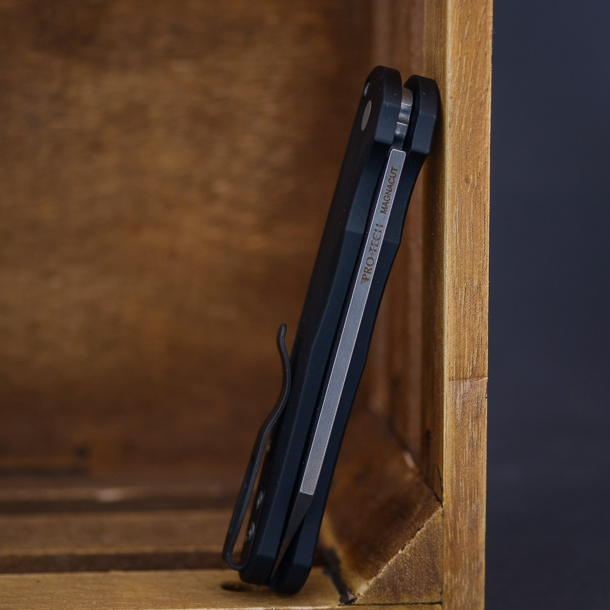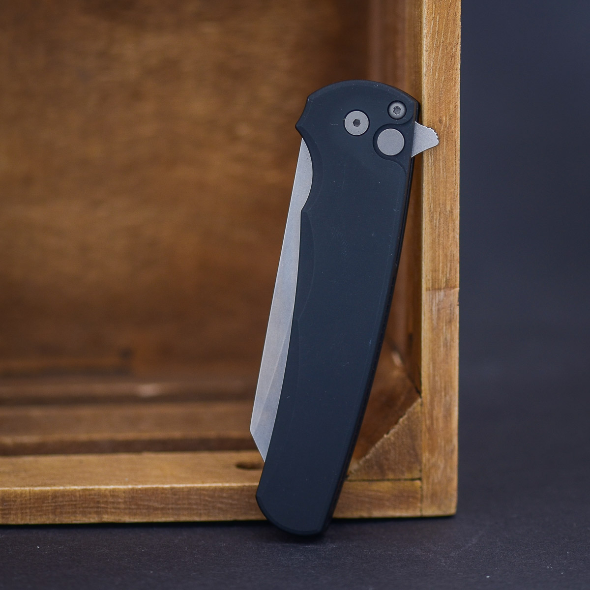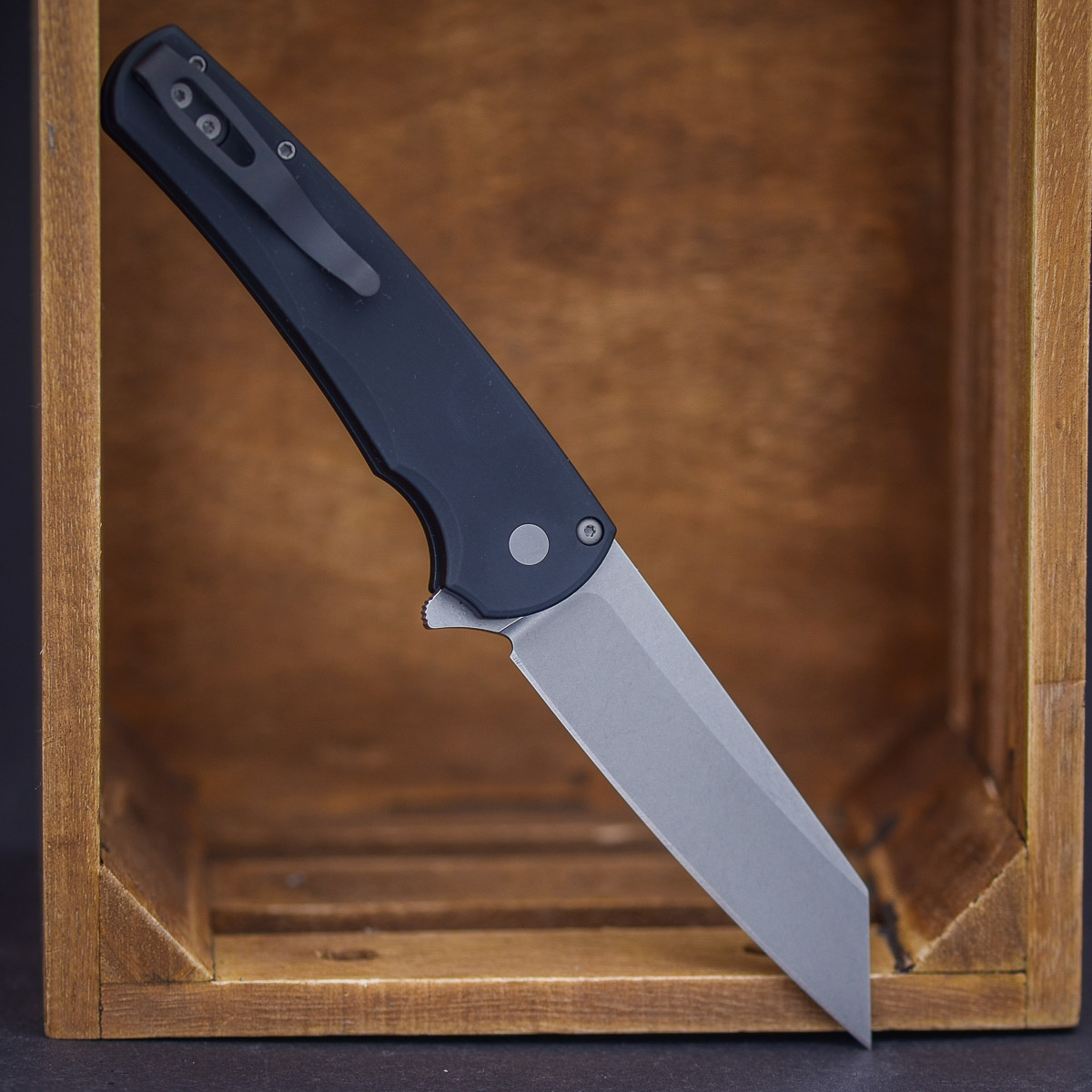Im Gegensatz zu vielen anderen ProTech-Messern handelt es sich hier um einen manuellen Flipper. Ein leichter Druck auf die Flipperlasche und die Klinge schießt aus dem Griff heraus - ganz ohne Federunterstützung.