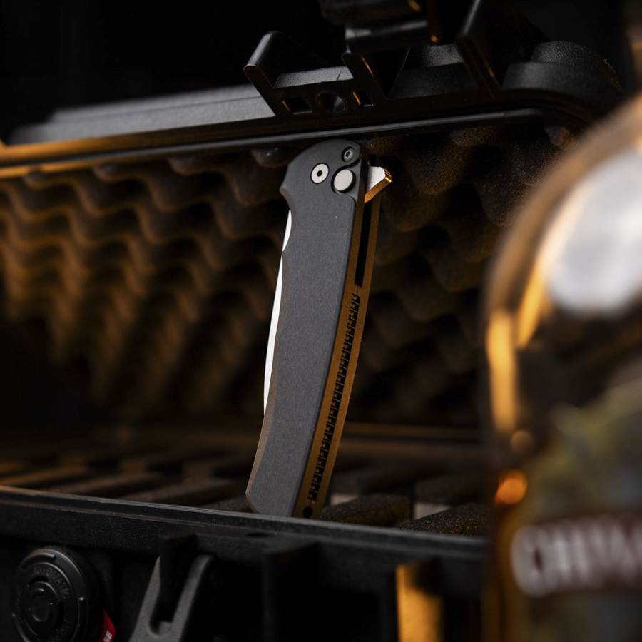 Anders als viele andere ProTech Messer, handelt es sich hier um einen Manuall-Flipper. Ein leichter Druck auf den Flipper-Tab und die Klinge schießt aus dem Heft - ganz ohne Federunterstützung.