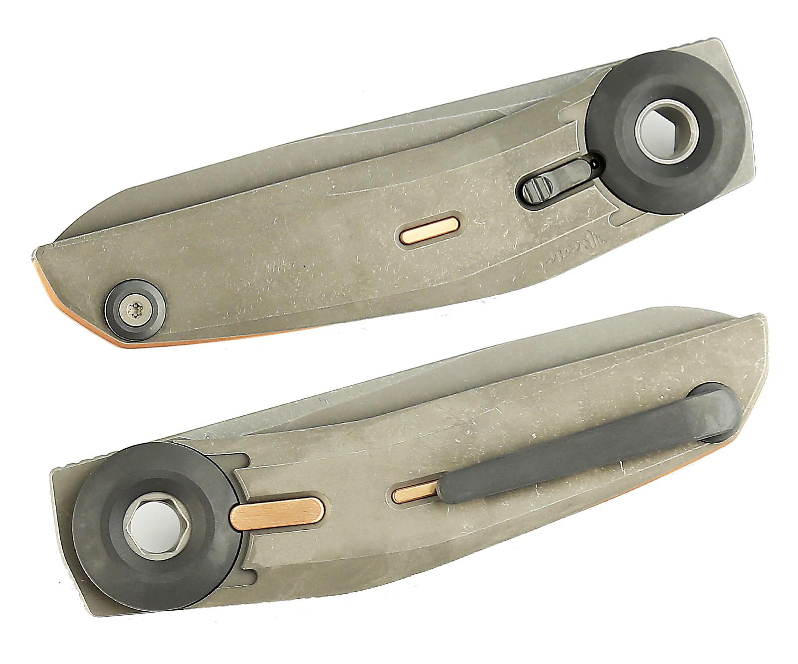 Ein besonderes Merkmal des VK-Tron ist das Double-Detent-System mit einstellbarer Spannung, das ein individuelles Öffnungsgefühl ermöglicht. Ein kleiner Schieber lässt den Detent so verstellen, dass du wahlweise mehr oder weniger Widerstand hast. Der Frontflipper sorgt für schnelles und sicheres Öffnen der Klinge.
