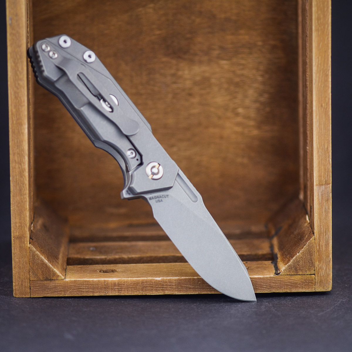 Mit seiner Magnacut-Klinge im Slicer Grind verbindet das Halftrack Stabilität mit echter Schneidfreude. Magnacut zählt aktuell zu den modernsten Stählen am Markt: sehr zäh, extrem korrosionsbeständig und mit einer hervorragenden Standzeit. Der Slicer-Anschliff holt aus der kompakten Klinge ein überraschend effizientes Schneidverhalten heraus.