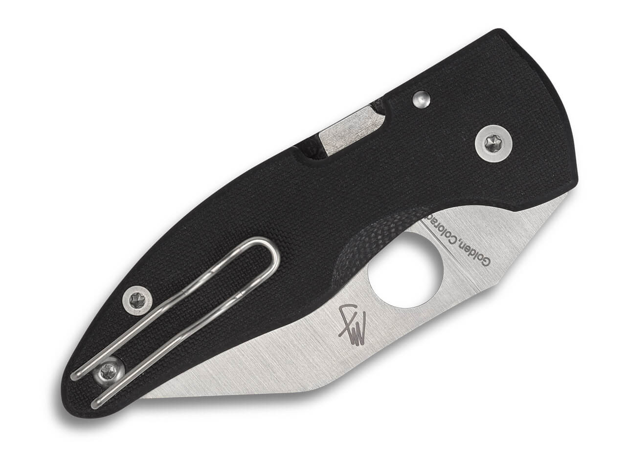 Die Wharncliffe-Klinge aus pulvermetallurgischem CPMS30V misst 6,2 cm. Der Flachschliff sorgt für verbesserte Spitzenstärke. Unterstützt wird die Klinge von einem starken Compression Lock Mechanismus und Edelstahllinern, die in texturierte G-10 Griffschalen eingelassen sind.