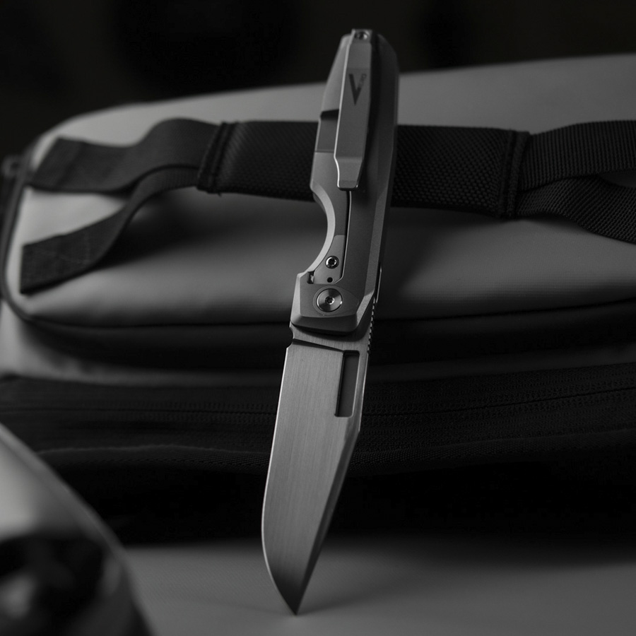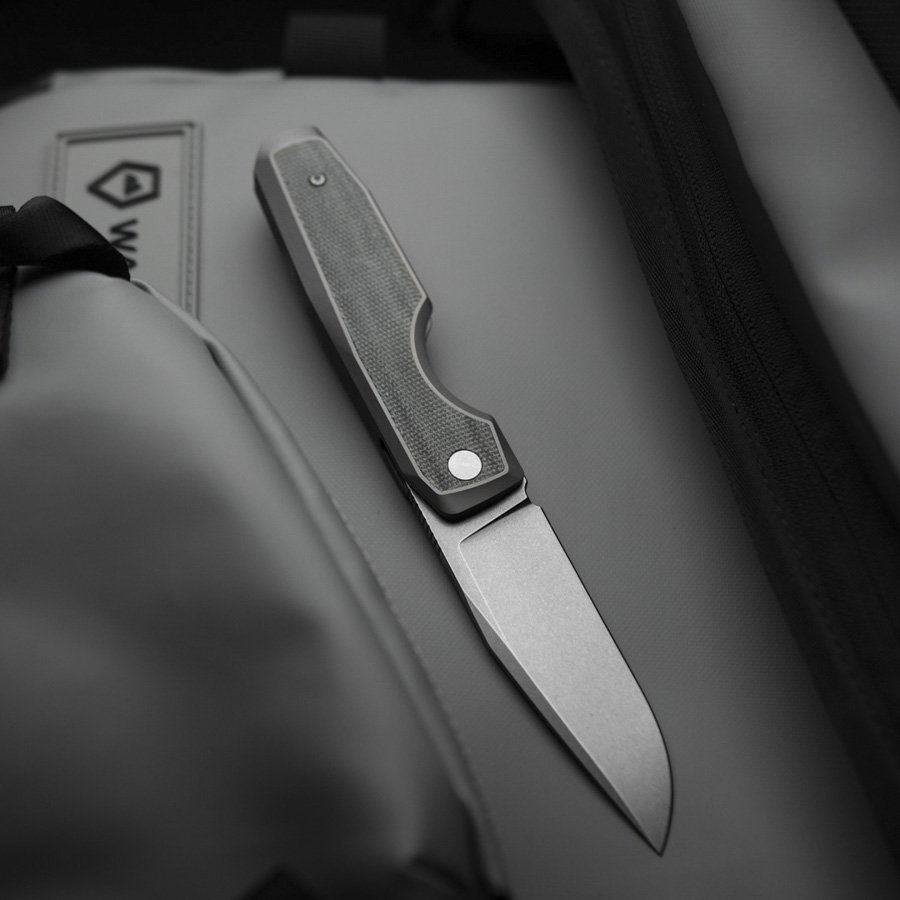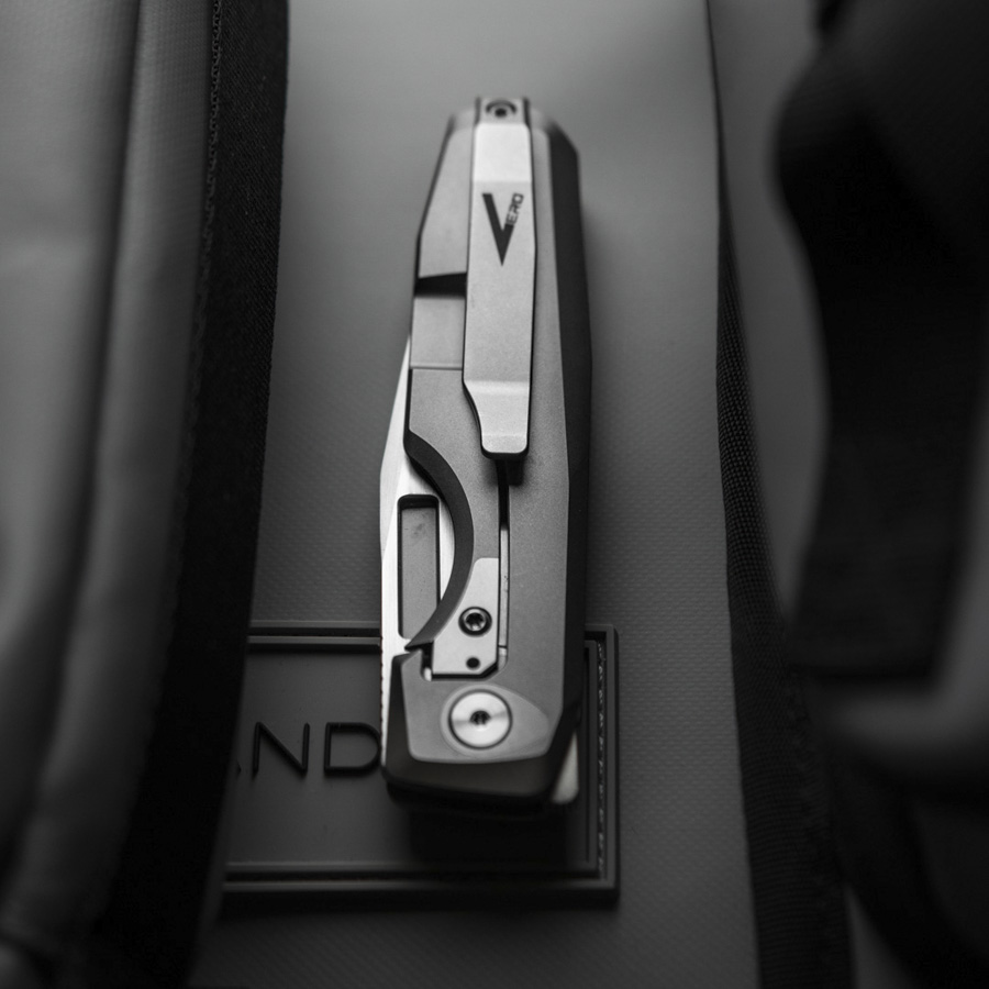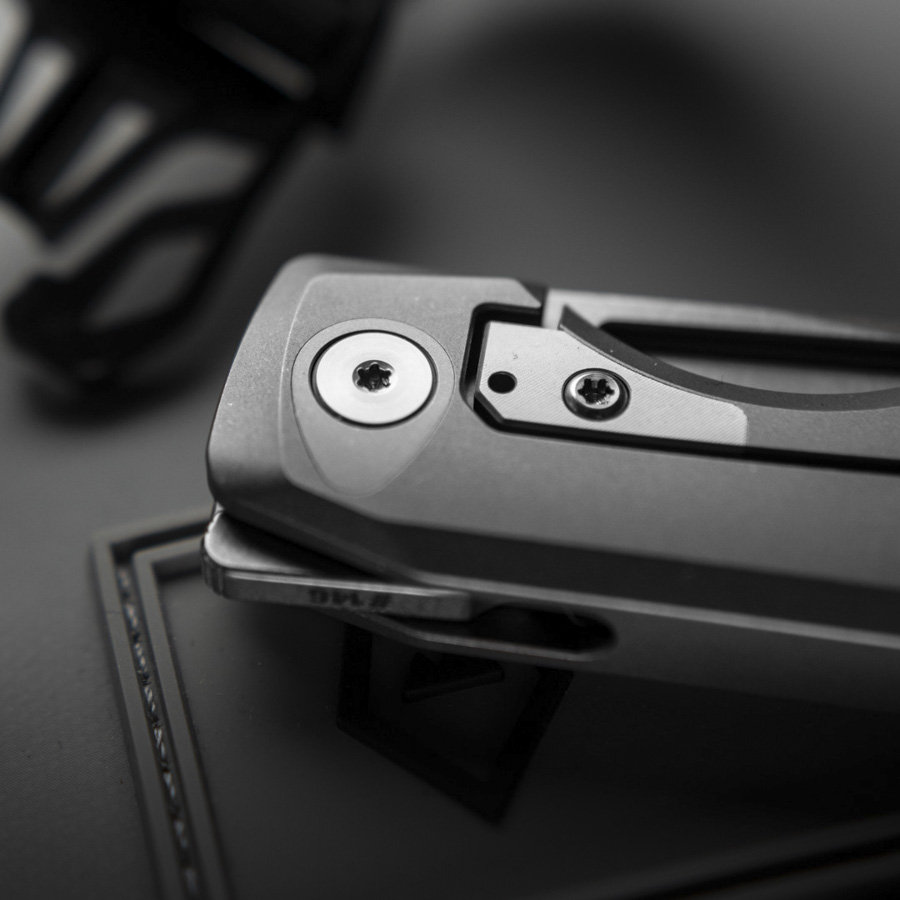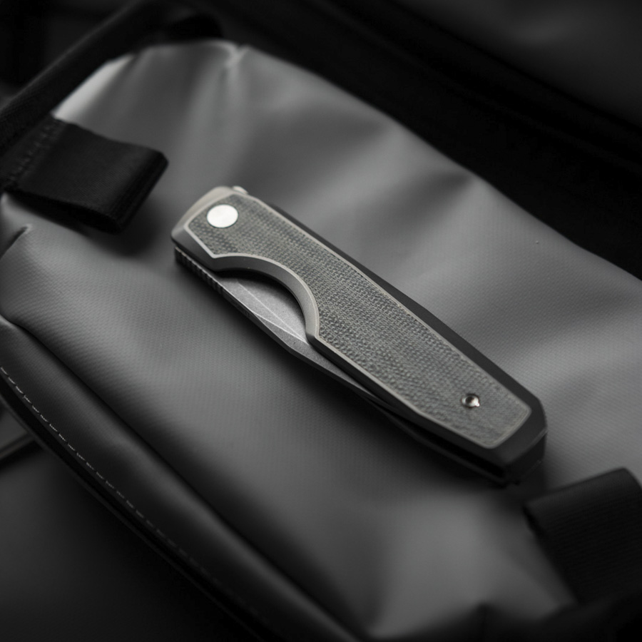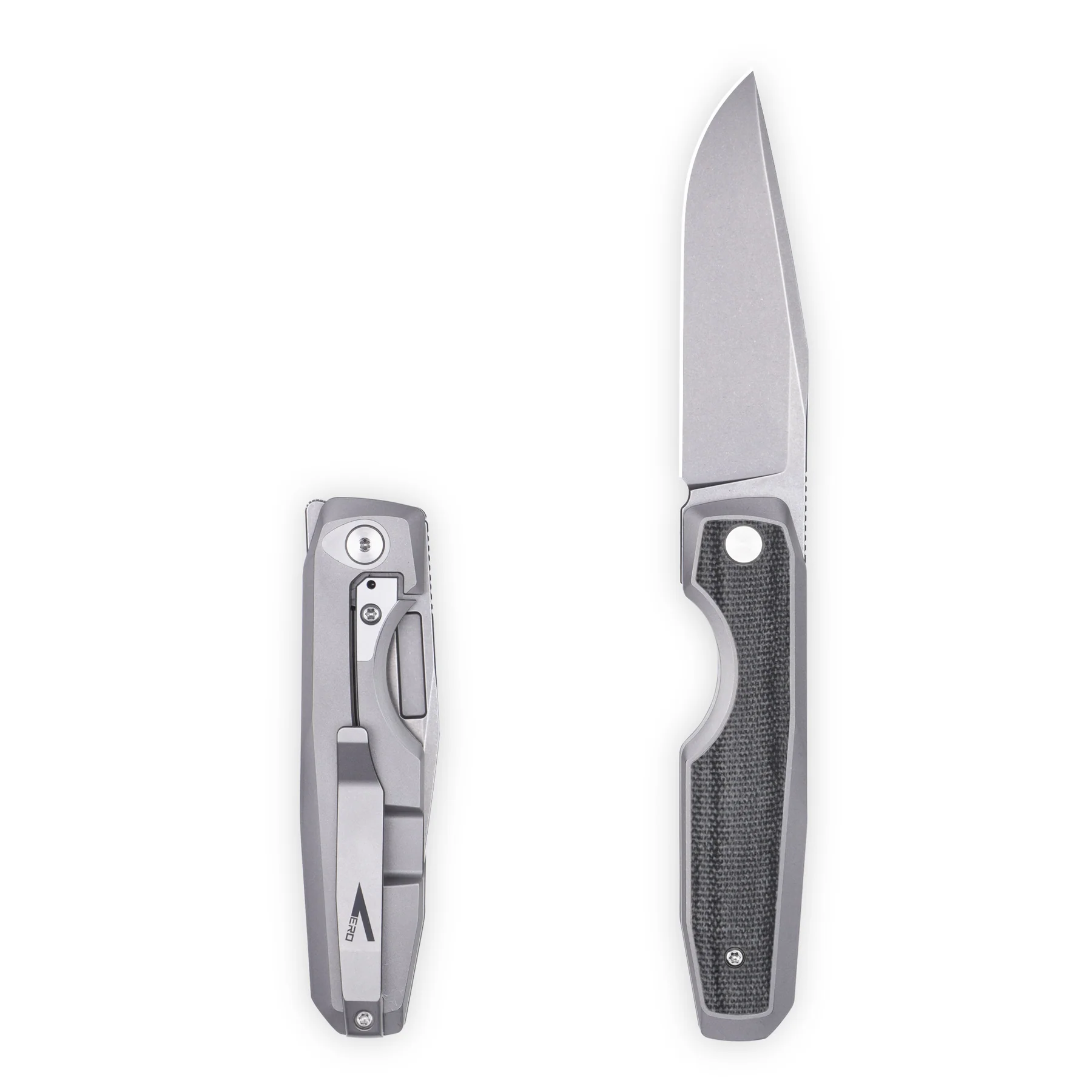 - Griff aus Titan mit Micarta, Kohlefaser, Titan oder Timascus Inlay