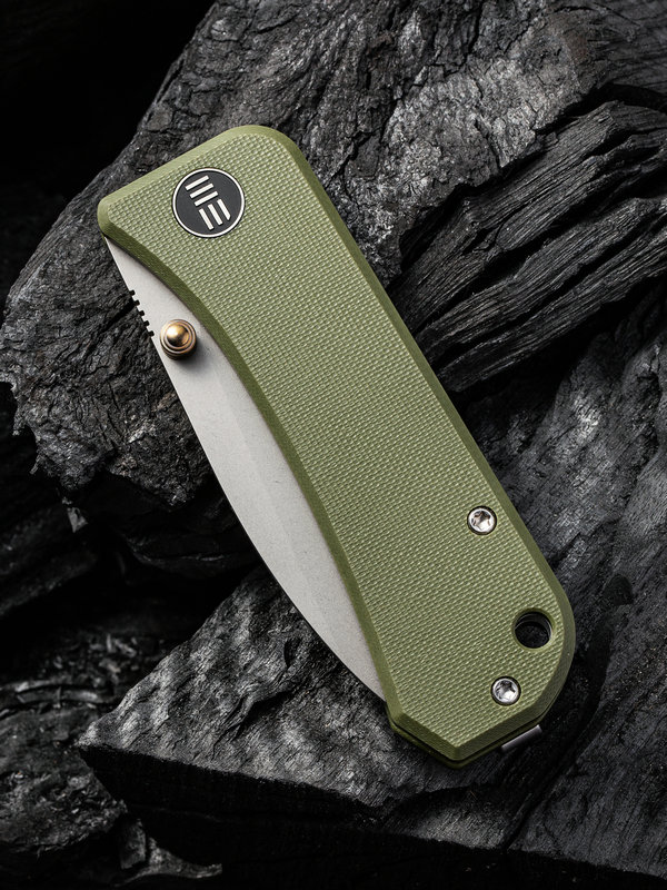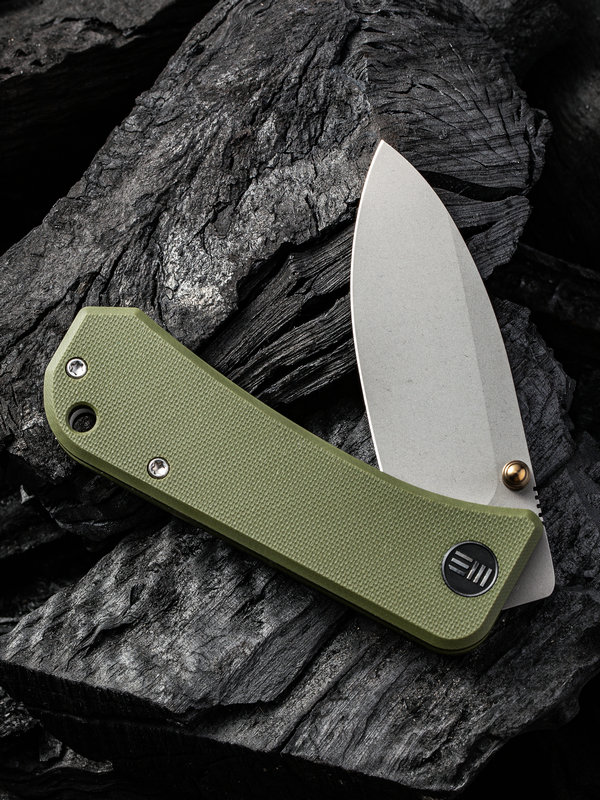 Die Klinge ist eine sehr universell geformte Spearpoint Klinge (in dieser Version mit einem schwarzen Stonewash Finish), die mit einem großen Hohlschliff versehen wurde. Das Geniale ist, dass WE Knife hier einen so dünnen Schliff gewählt haben, dass das Banter ein unglaublicher Schneidteufel ist. Die Klinge aus S35VN fliegt nur so durch das Schnittgut und ist im EDC Alltag allen Schneidaufgaben gewachsen. Für ein smoothes öffnen der Klinge sorgen keramische Kugellager, die dem Banter einen gewissen Spielspass verleihen.
